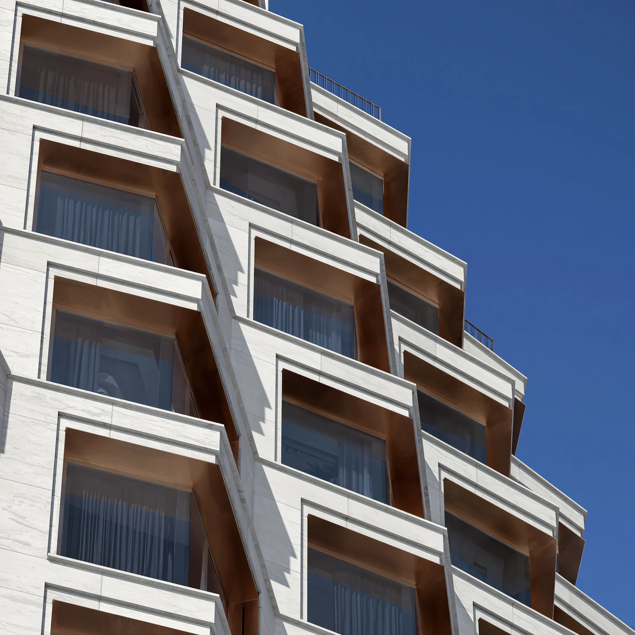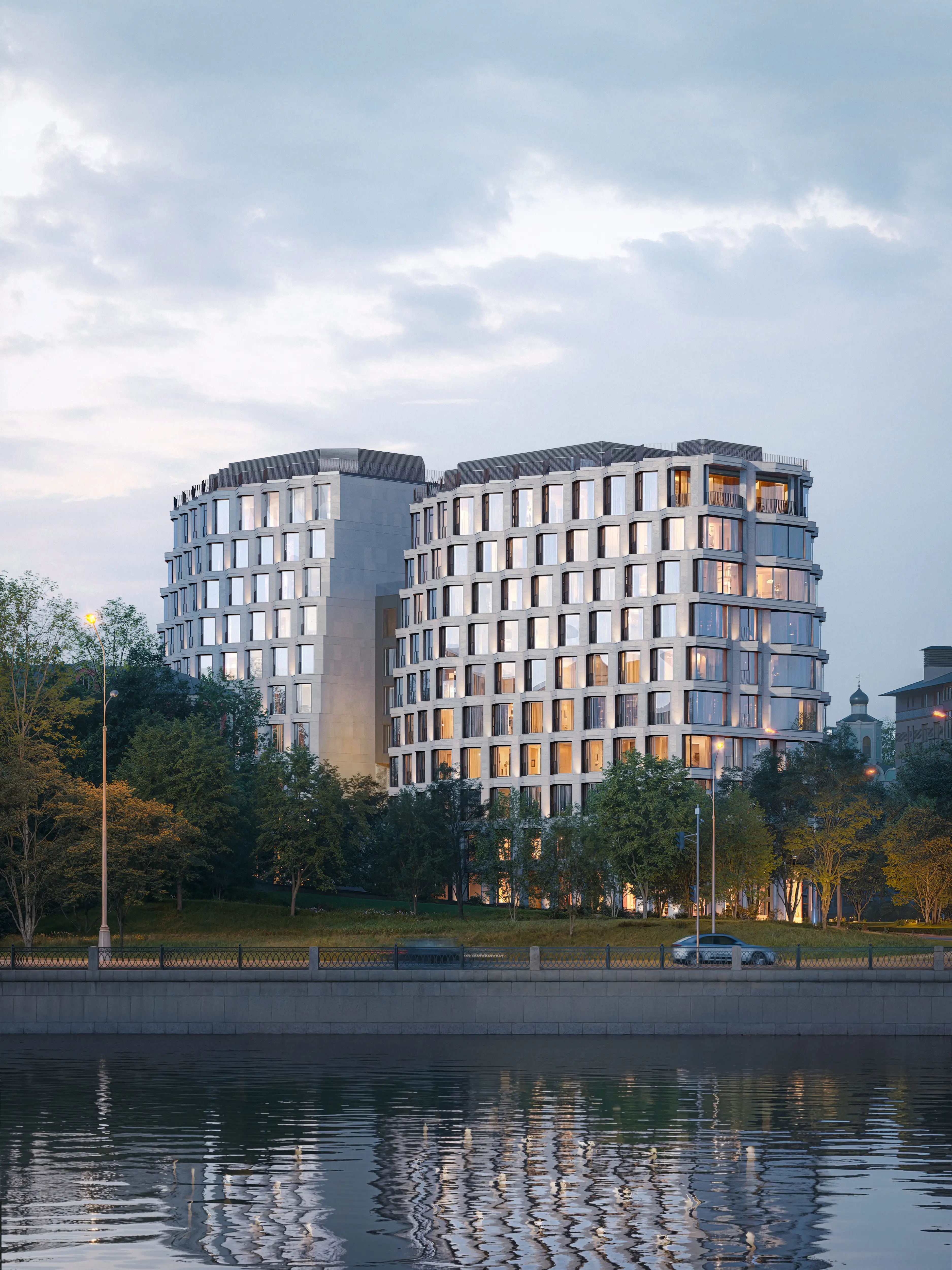 Клубный дом «Узоры» состоит из двух малоэтажных секций в девять и десять этажей, объединенных в единый ансамбль двухуровневым стилобатом, и максимально раскрытых в сторону набережной, обеспечивая потрясающие видовые характеристики.